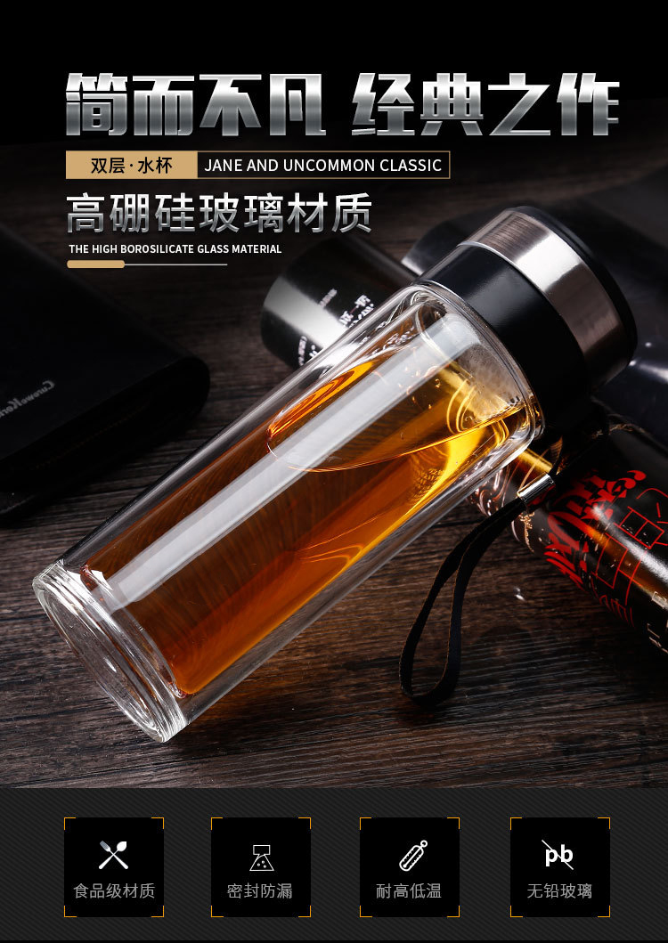 江西聚星石油化工定制雙層玻璃杯客戶禮品廣告杯