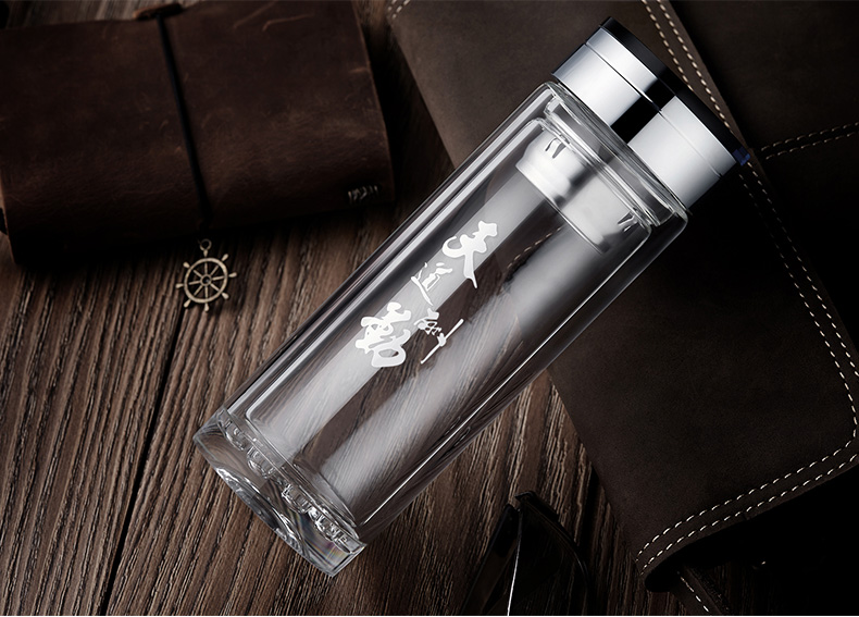 創意雙層波點底玻璃杯帶蓋茶杯批量訂定制印LOGO