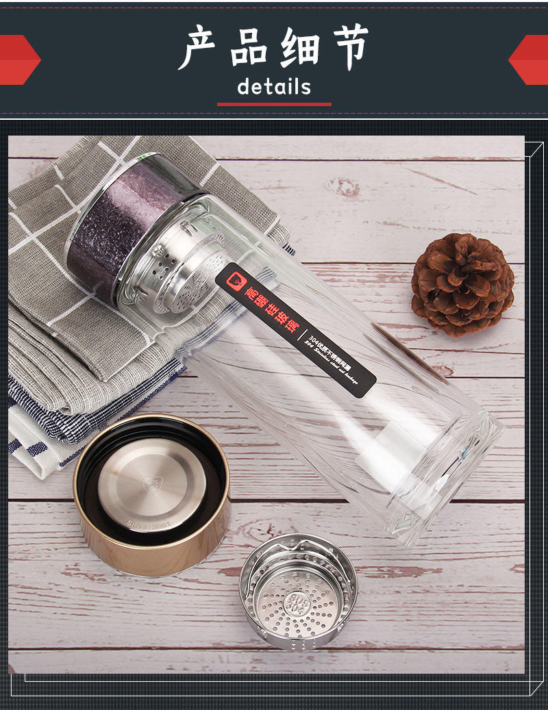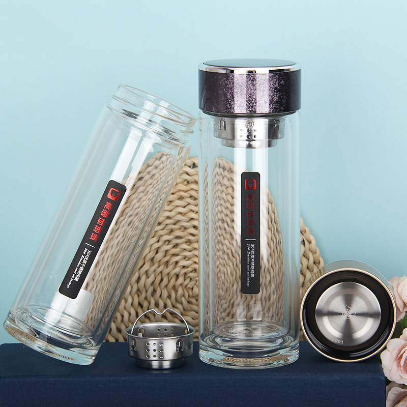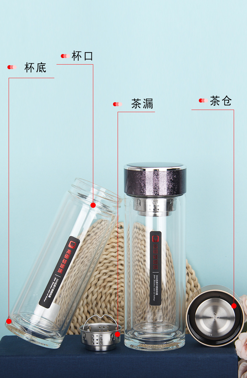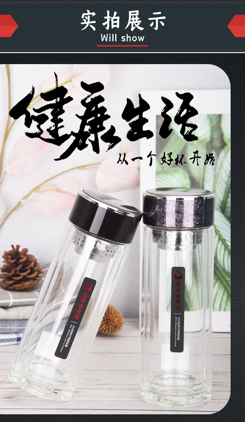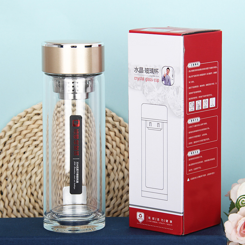 424雙層加厚隔熱水晶玻璃杯高硼硅禮品杯廠家批發廣商務水杯