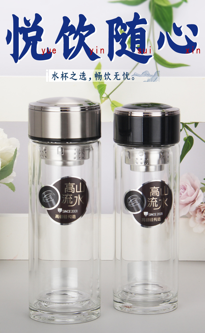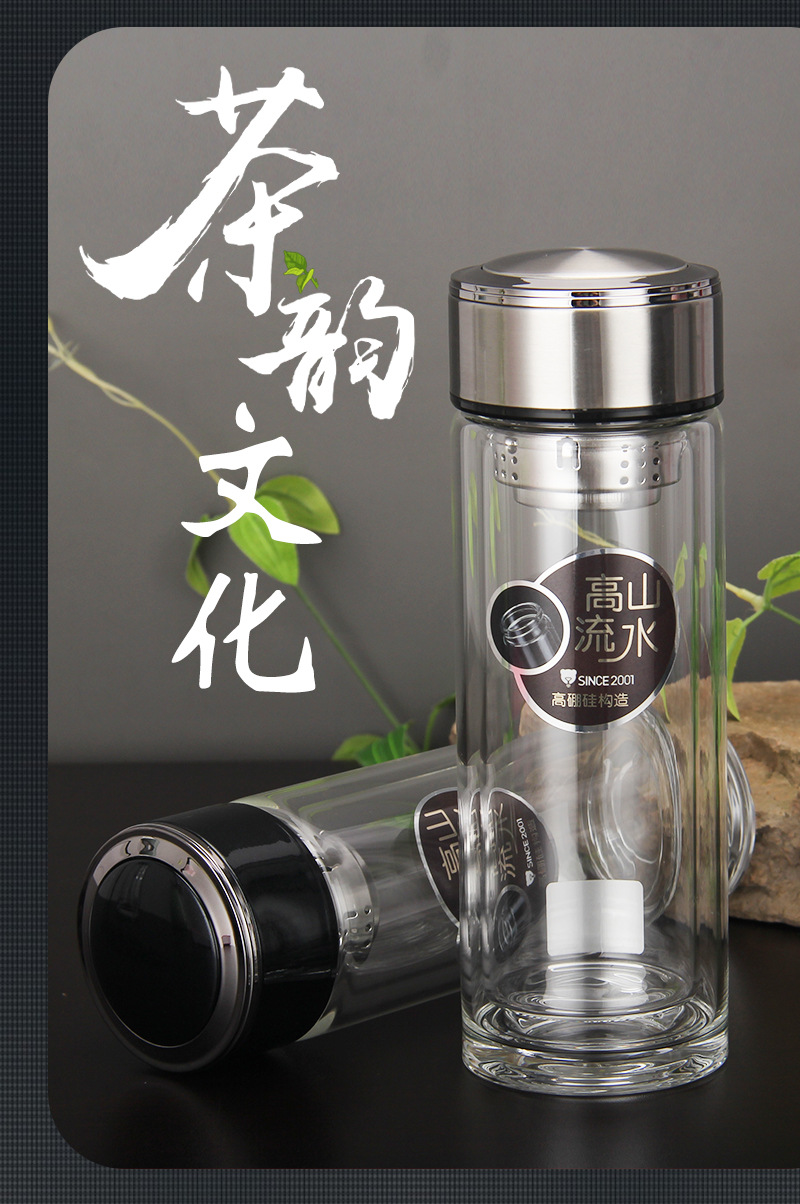 廠家批發(fā)定制LOGO 雙層高硼硅杯 厚底水晶杯