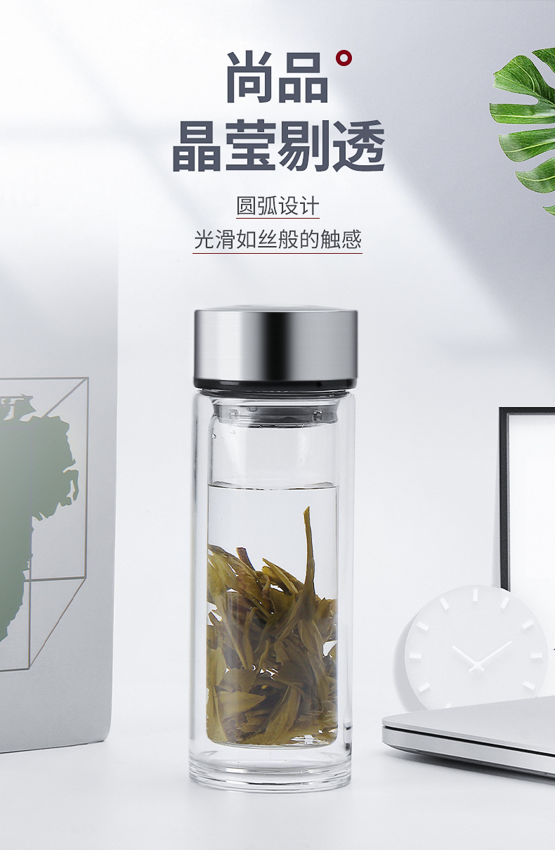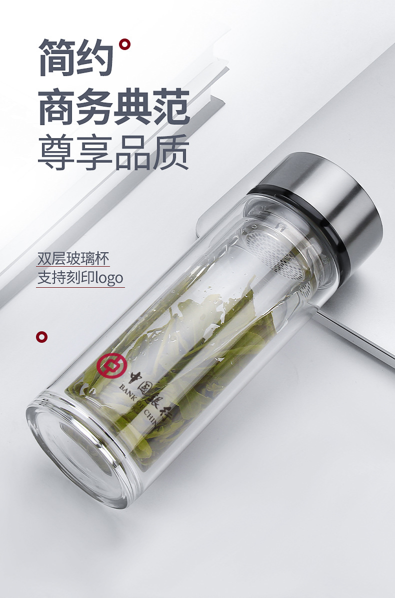 新款商務(wù)辦公雙層加厚玻璃杯創(chuàng)意廣告杯禮品水杯定制logo水杯批發(fā)