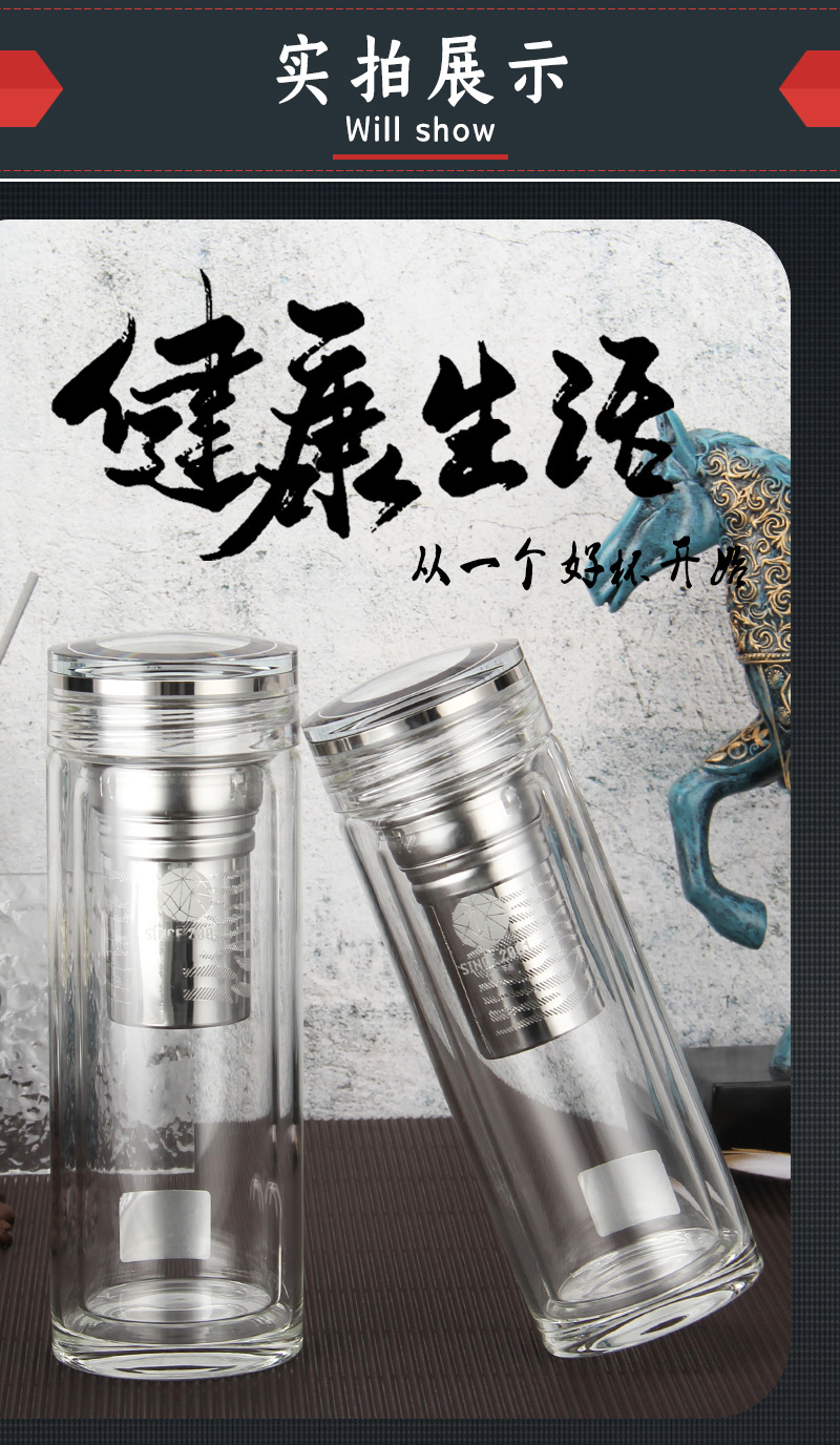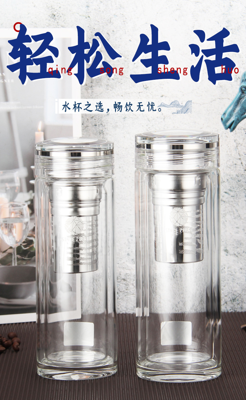 鈦蓋雙層玻璃水晶杯