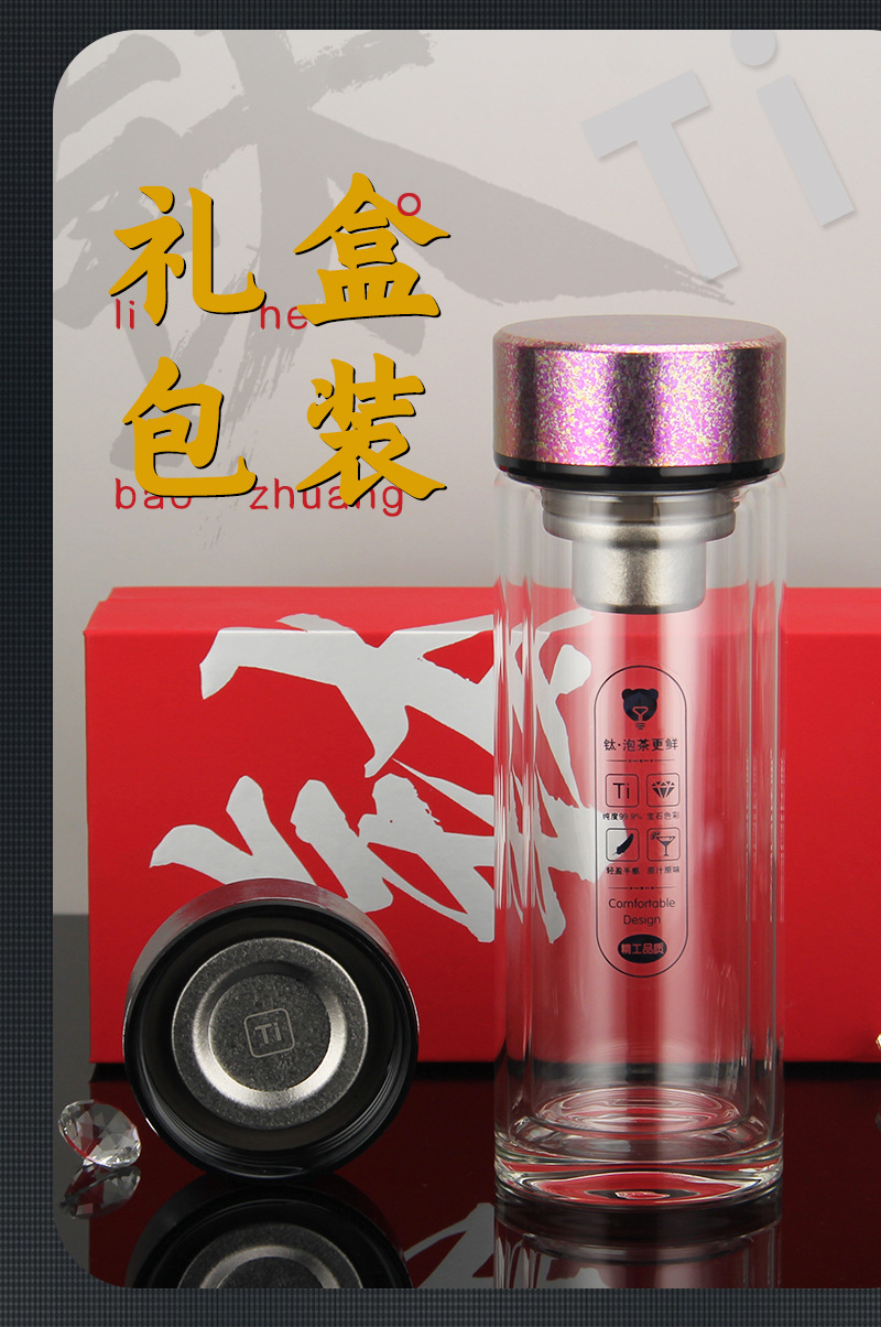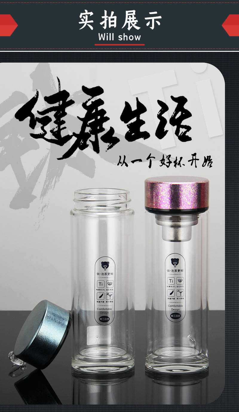 雙層玻璃杯純鈦蓋子