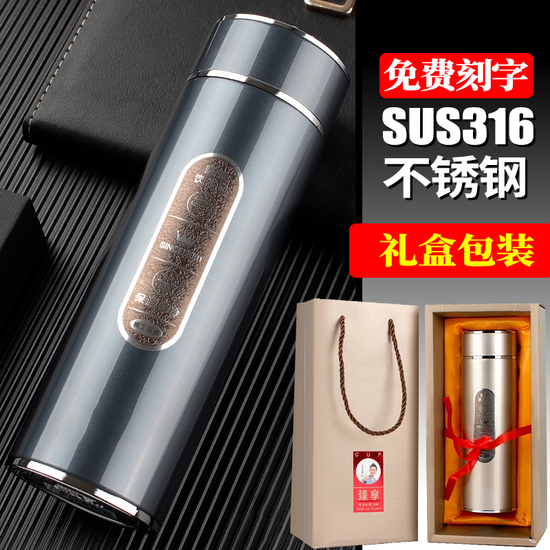 保溫杯男女商務真空不銹鋼直身杯辦公泡茶杯禮盒裝水杯子316