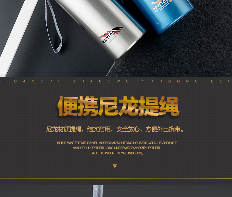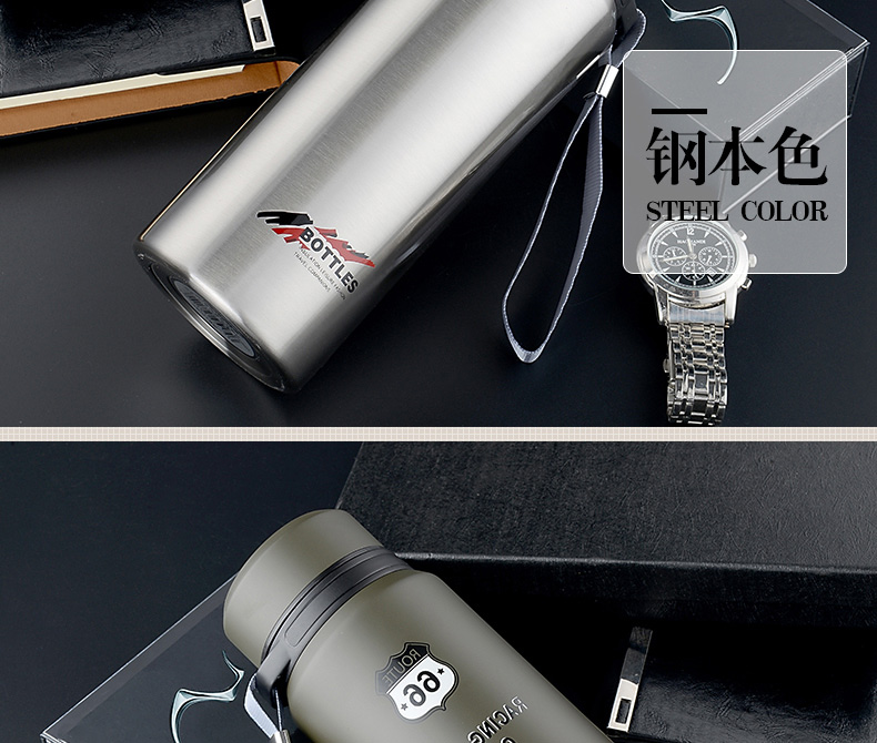 真空保溫杯創意禮高檔不銹鋼子彈頭戶外隨行吊帶定制水壺杯子