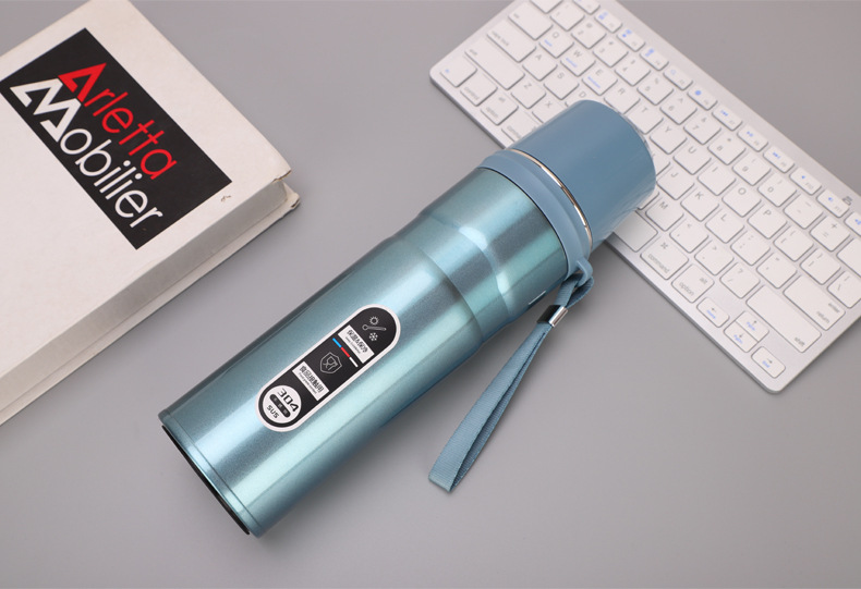 新款大容量提繩保溫杯戶外便攜304杯蓋水杯企業年會禮品定制杯子