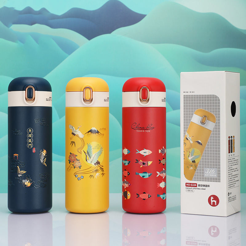 316不銹鋼真空保溫杯中國風潮彈蓋車載杯LOGO