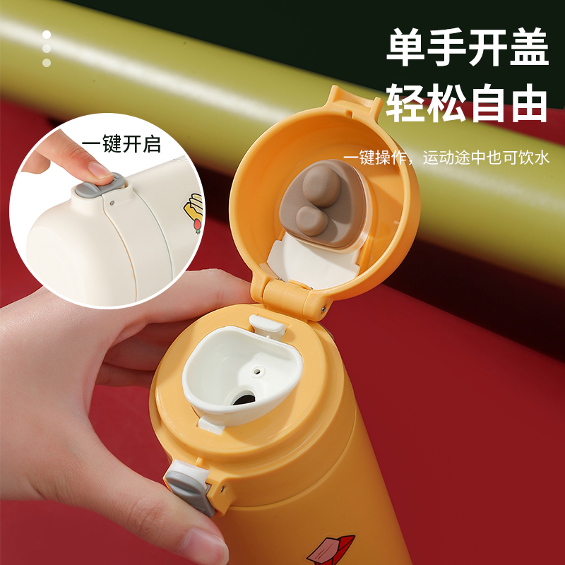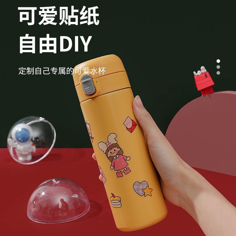 新款豌豆杯簡約時(shí)尚便攜彈跳杯蓋車載保溫杯304不銹鋼DIY水杯直飲