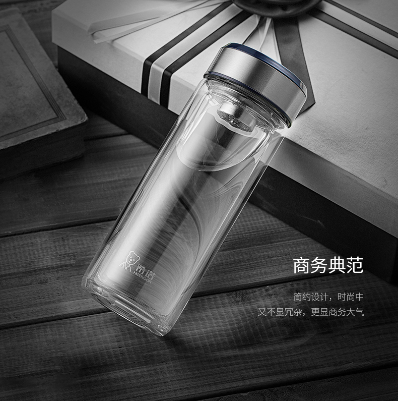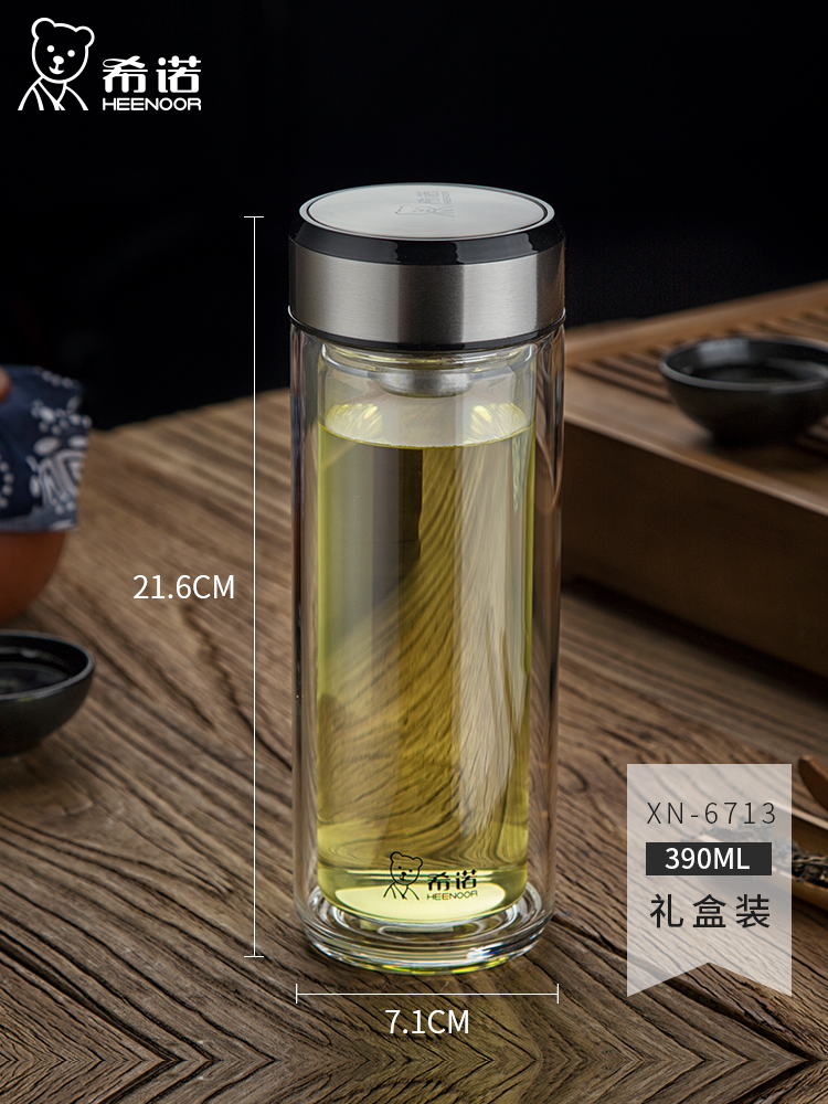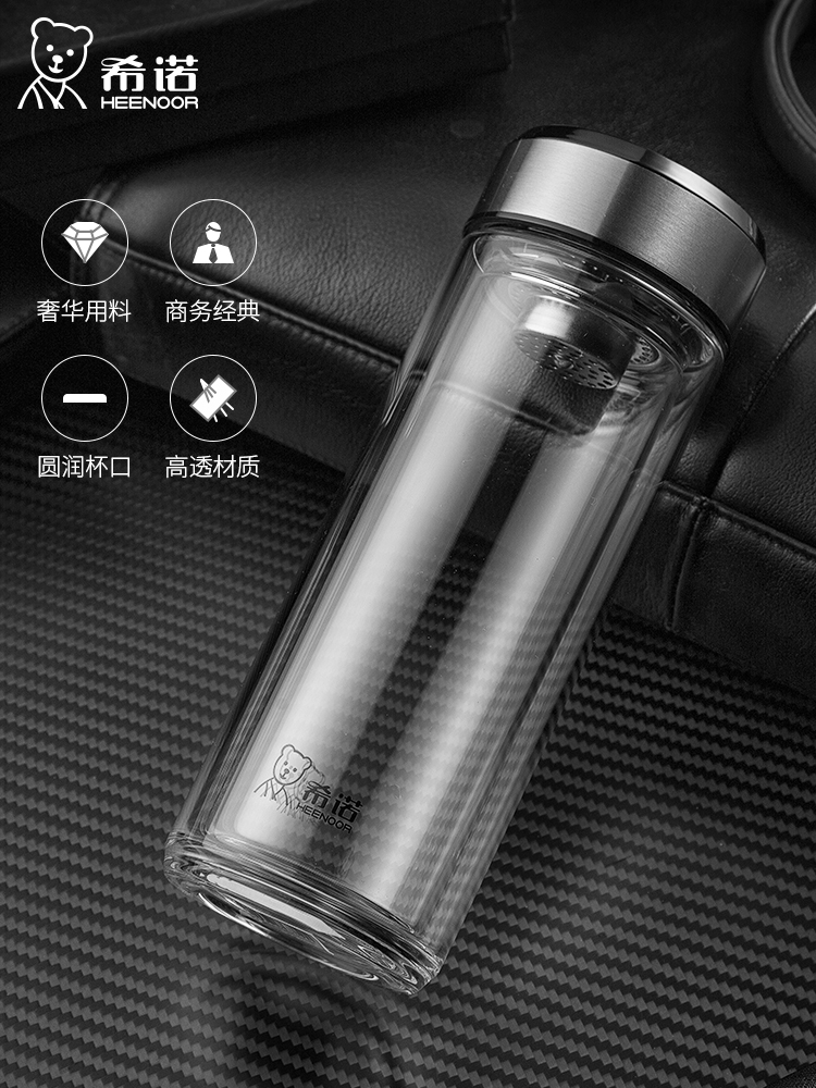 希諾雙層玻璃杯茶水分離水杯男家用透明過(guò)濾泡茶杯子高檔送禮商務(wù)