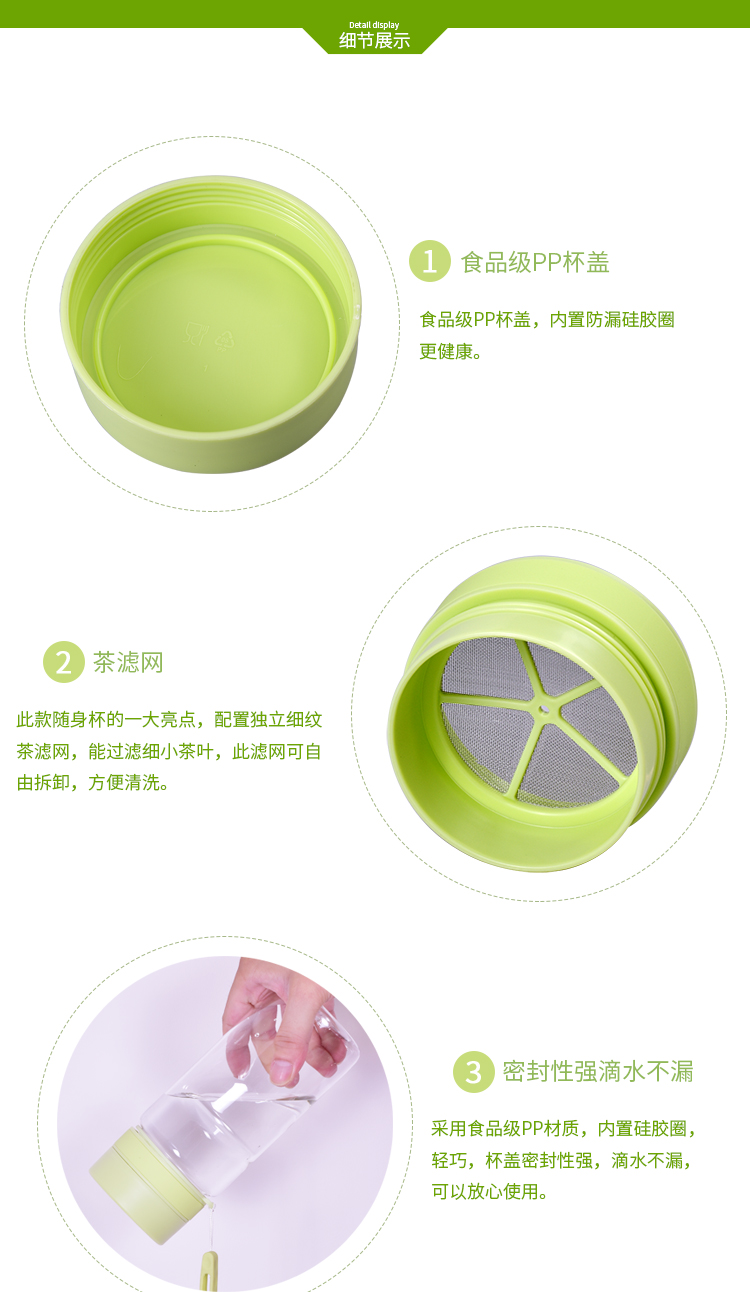 便攜防漏tritan水杯 防燙塑料杯子 隨身杯 帶濾網運動水杯 320ml
