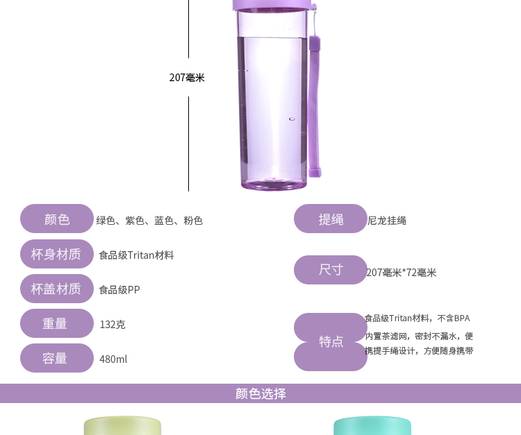 創意塑料杯子 便攜水杯 茶杯 學生杯子帶茶隔 運動水杯 tritan隨手杯 480ml